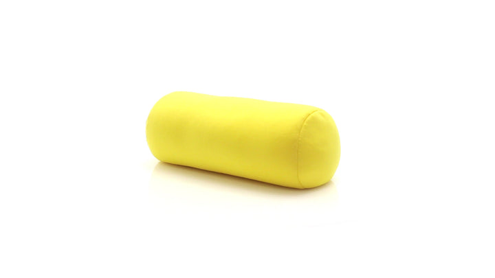 Zylinderförmiges Kissen aus weichem Polyester in einer Vielzahl von lebendigen Farben. Mit Kügelchen-Füllung und neutralem Etikett zum Bedrucken.