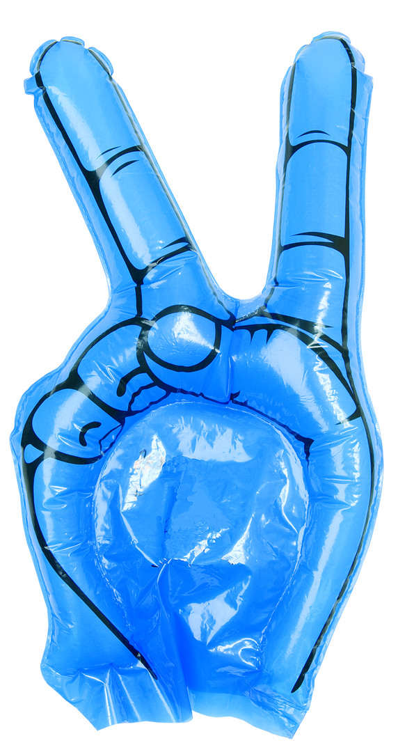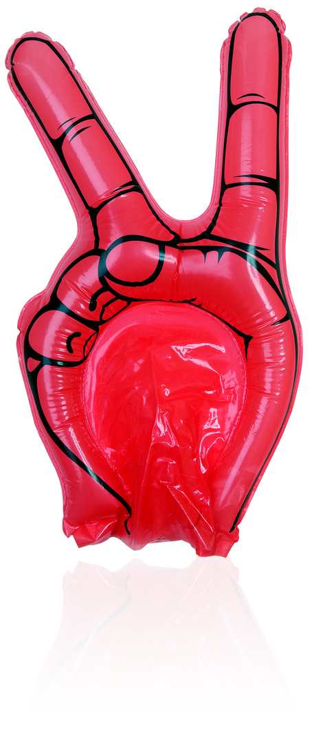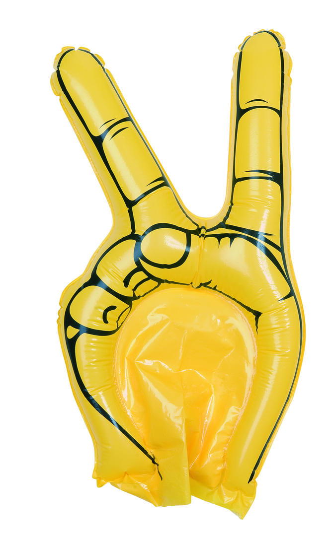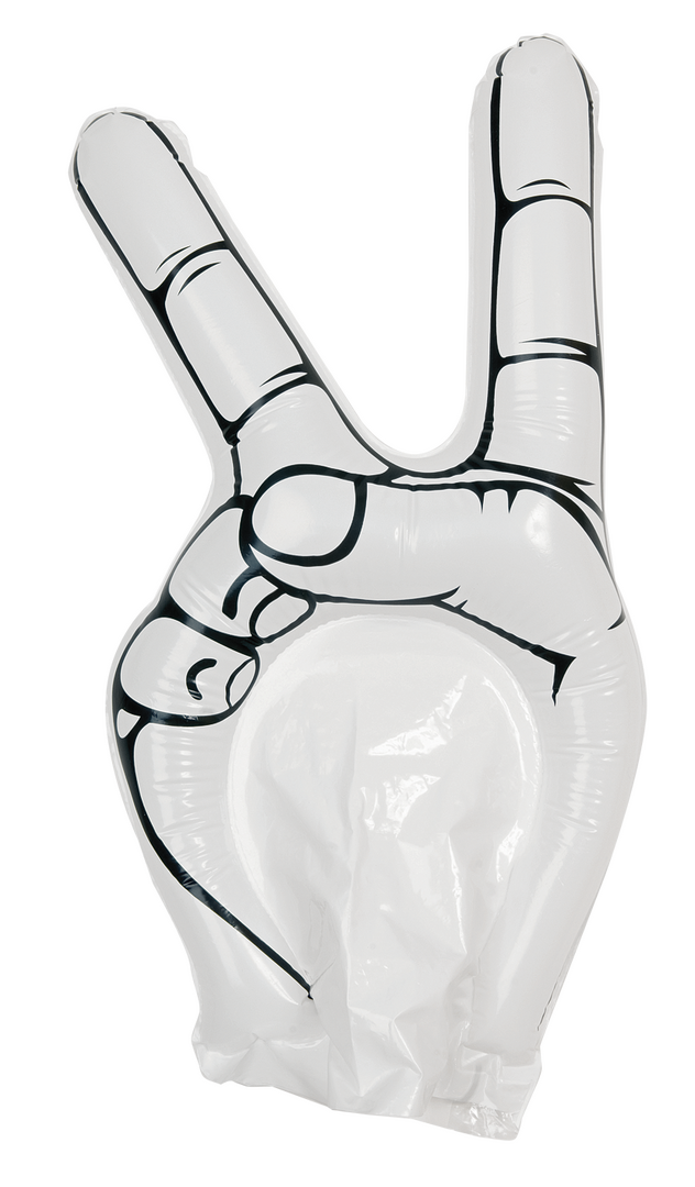 Tolle Hand mit Victory-Zeichen aus robustem LDPE-Material in leuchtenden Farben. Wiederverwendbar und mit Ventil.