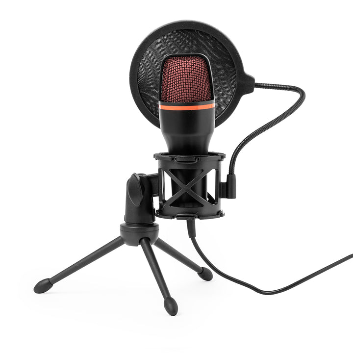 Kondensatormikrofon mit hoher Audioqualität, ideal für Live-Übertragungen, Videotelefonate oder die Aufnahme von Podcasts und viele andere Anwendungen. Mit Rauschunterdrückungssystem und Anti-Pop-Filter zur Vermeidung von unerwünschten Pops und/oder Zischlauten bei der Produktion von Geräuschen wie t, p oder s. Mit Hintergrundbeleuchtung durch mehrfarbige LEDs und mit einfachem Plug-and-Play-Verbindungssystem über USB-Kabel, kompatibel mit PC und anderen Geräten. Einschließlich eines verstellbaren Stativs, um es überall aufstellen zu können, sowie einer 360º-Drehung und einer vertikalen Einstellung. Einzeln verpackt in einer Design-Kraftstoffbox, mit Bedienungsanleitung in Englisch und Spanisch.