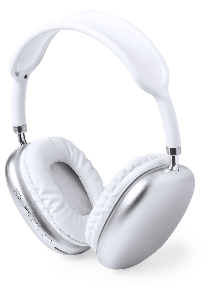 Originelles Headset mit Bluetooth 5.0-Verbindung, modernem Design und quadratischen Ohrpolstern, in der Farbkombination Weiß und Silber. Im Headset integriertes Bedienfeld, Freisprechfunktion und microSD-Kartenslot. Line-Eingang über 3,5 mm Klinkenanschluss, inkl. 1 m Kabel. Wiederaufladbar über USB-Kabel (30 cm im Lieferumfang) und mit 150 mAh-Akku. Präsentiert in einer individuellen Kraftbox mit Schutzpapier.