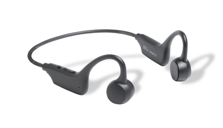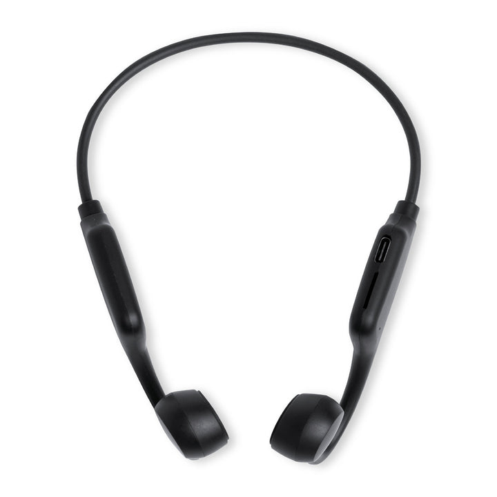 Auriculares supraurales Bluetooth®. Con Tecnología de Conducción Ósea (Bone Conduction Technology), que generan una vibración captada por los huesos del oído interno. Mediante esta tecnología, el pabellón auditivo y los tímpanos del usuario quedan libres, percibiéndose tanto el contenido que se está reproduciendo a través de los auriculares como el resto de sonidos ambiente de alrededor.Conexión Bluetooth® 5.3, con función manos libres, ranura para tarjetas micro SD y batería de 250 mAh integrada. De diseño ergonómico, incluyen botones de control integrados, luz LED de estado de carga y cable de carga Tipo C. Presentados en caja individual de diseño kraft, con manual de instrucciones en español e inglés.