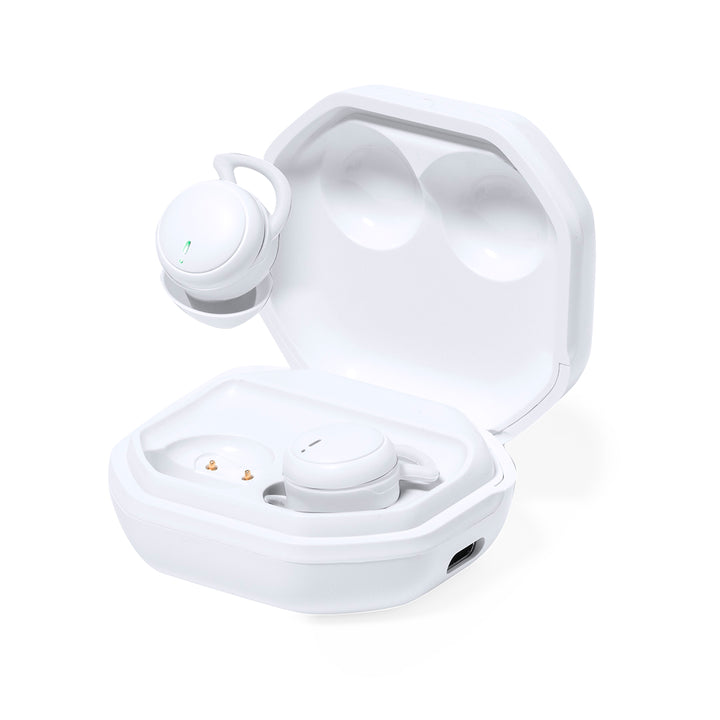 Ohrhörer in eleganter weißer Ausführung mit Bluetooth 5.0-Verbindung. Ergonomisches und kompaktes Design, so dass das Ohr aufgelegt oder abgedeckt werden kann, ohne dass es unangenehm wird. Mit in der Hörmuschel integrierter Touch-Control-Taste und passender Ladestation. Freisprecheinrichtung und wiederaufladbar, mit Typ-C-Kabel im Lieferumfang. Einzeln verpackt in einem Deluxe-Etui mit Scharnierdeckel und 250-mAh-Ladestation. Präsentiert in einer attraktiven Kraft-Design-Box, mit Bedienungsanleitung in Englisch und Spanisch.Hergestellt nach RoHS-Standards und in Übereinstimmung mit den folgenden Sicherheitsanforderungen:Überhitzungsschutzsystem.Überladungsschutzsystem.Blockiersystem zur Vermeidung von Kurzschlüssen.