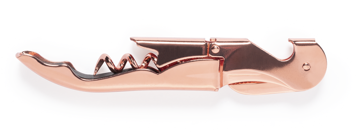 2-Takt-Korkenzieher aus rostfreiem Stahl mit verzinkter Kupferbeschichtung. Integrierter Kapselschneider und präsentiert in einer individuellen Designbox.