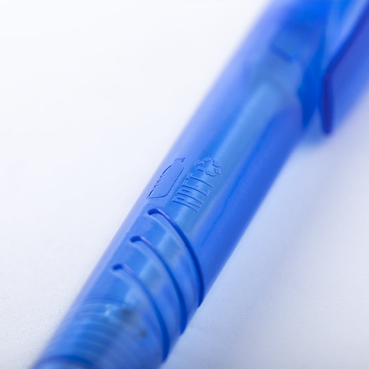 Nature Line Kugelschreiber aus RPET-Material, hergestellt aus recyceltem Kunststoff, um die Wiederverwendung von Kunststoffabfällen zu fördern und die Nachhaltigkeit des Planeten zu unterstützen. Transluzentes Finish, mit RPET-Logo auf dem Stiftkörper und in einer großen Farbauswahl erhältlich. Speziell entwickelter Clip für Tampondruck, mit Druckknopfmechanismus und blauer Tinte.