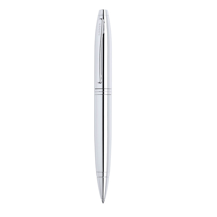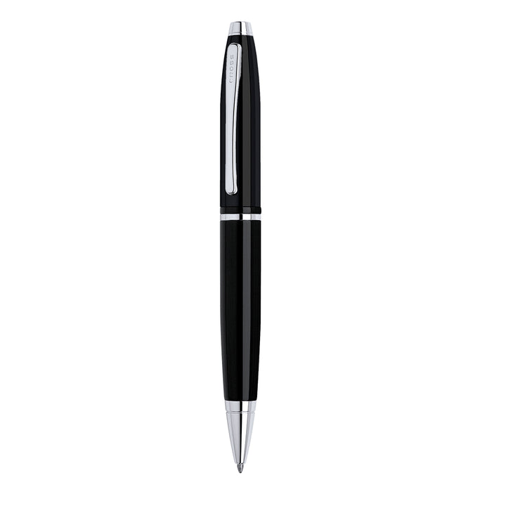 Druck-Kugelschreiber von Cross - Modell Calais. Mit elegantem, zweifarbigem Design und geschmeidigem Metallgehäuse in verschiedenen Farben. Präsentiert in einer individuellen, eleganten Schachtel in Schwarz mit dem Markenlogo, sowie Wildleder-Interieur in passender Farbe. Schwarze Tinte.