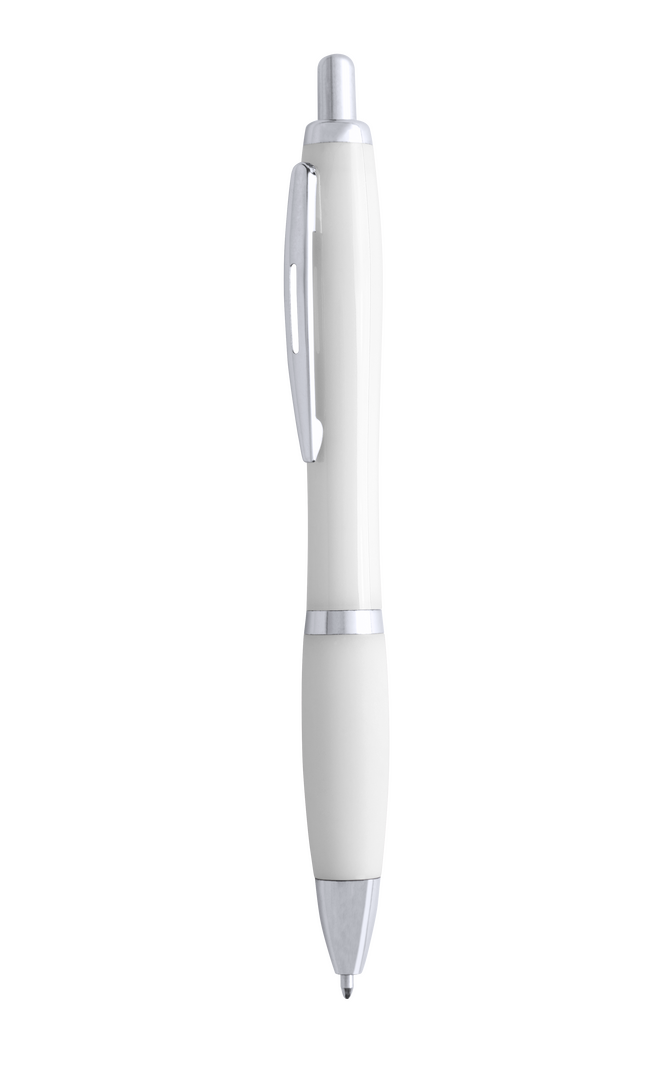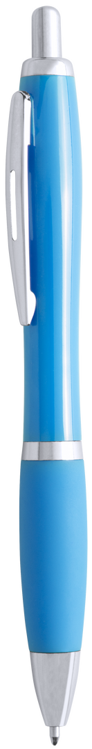 Druck-Kugelschreiber mit auffälligem zweifarbigem Design mit Kontrastdetails in Silber und glattem Schaft in lebhaften soliden Farben. Mit originellem Metallclip mit Stanzung in passender Farbe und bequemem Griff. Blaue Tinte.