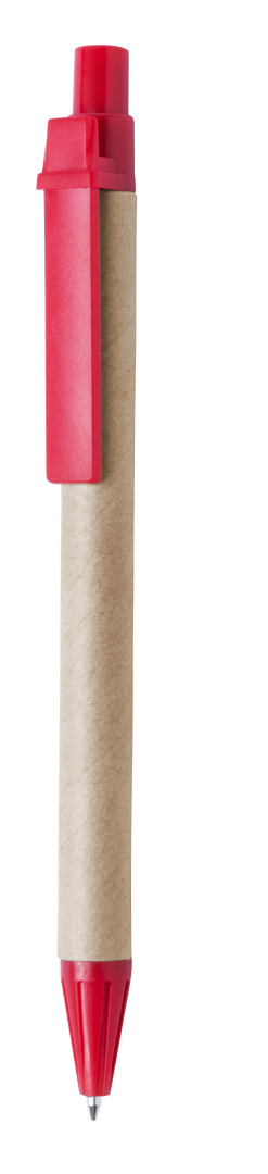 Druck-Kugelschreiber mit origineller Kombination - Schaft aus recyceltem Karton in Naturfarbe mit Kontrastdetails in lebendigen Farben. Schwarze Tinte.