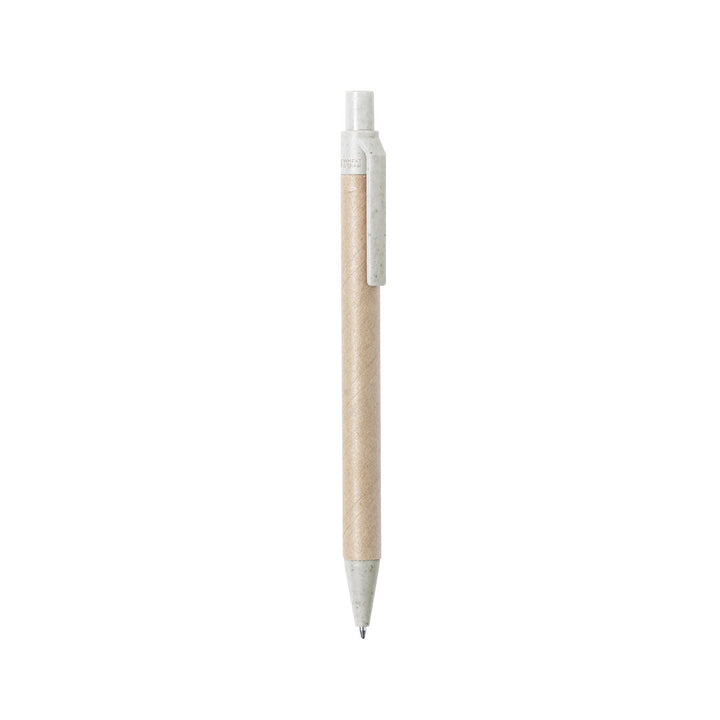 Nature Line Kugelschreiber mit Druckknopfmechanik. Kombination aus recyceltem Kartonkörper in natürlicher Farbe und Zubehör aus Weizenrohr und ABS, um die Verwendung und Wiederverwertung von Rohstoffen zu fördern und damit Schadstoffemissionen zu reduzieren.Erhältlich in einer Vielzahl von Farben, mit blauer Tinte. Weizenstroh unverwechselbar auf der Oberseite des Stiftes.