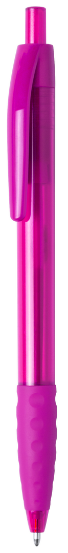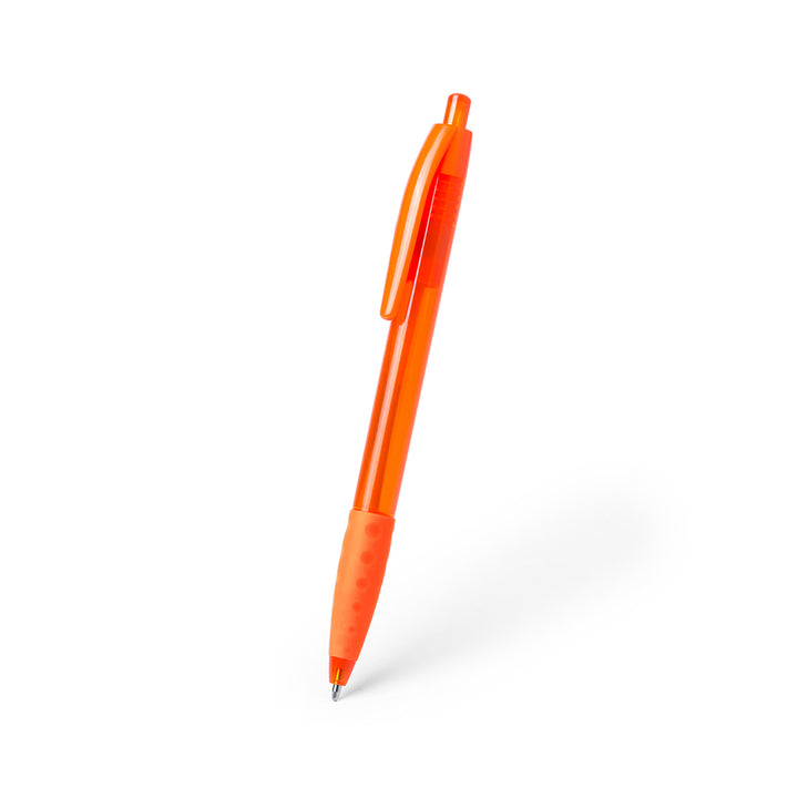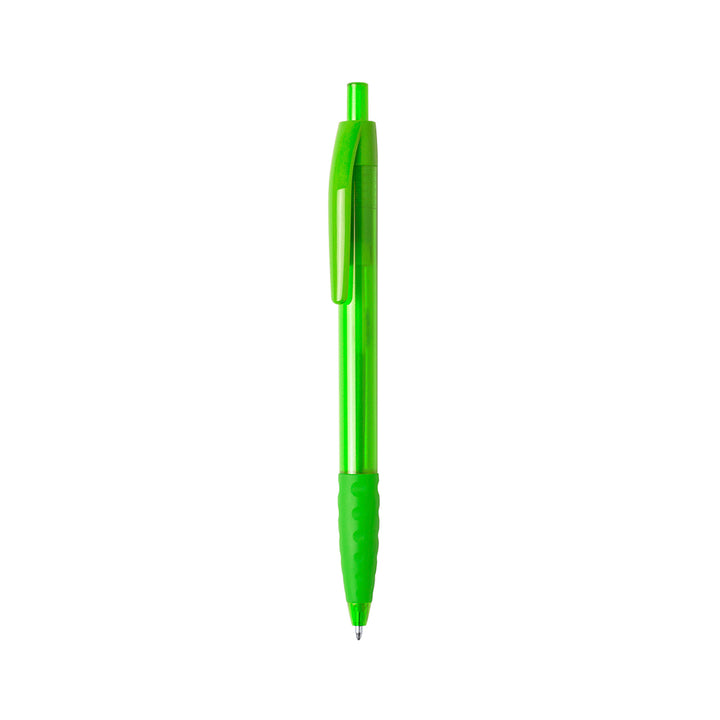 Druck-Kugelschreiber mit halbtransparentem Gehäuse in lebendigen Farben. Mit weichem, bequemem Griff und farblich passendem Clip. Blaue Tinte.