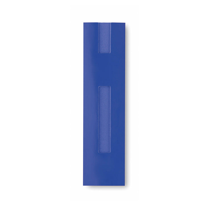 Hülle für Kugelschreiber aus robustem Karton mit Fenster in kräftigen Farben.