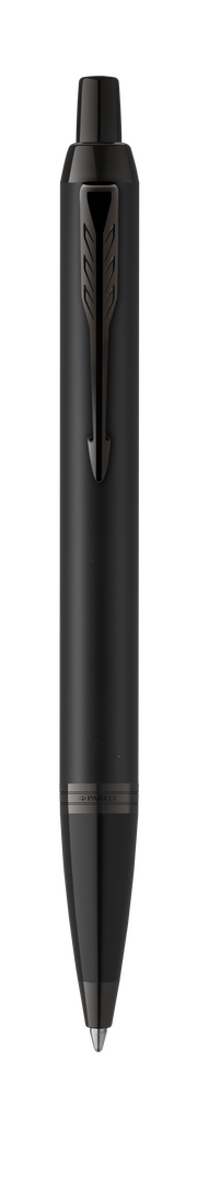 Parker IM Achromatic Kugelschreiber, aus mattschwarz lackiertem Edelstahl, mit Druckknopfmechanik und blauschreibender Tinte. Mit schwarzer Zierleiste und markantem Clip in der für die Marke typischen Pfeilform, ebenfalls in Schwarz. Ein elegantes, raffiniertes und bewährtes Design, das durch eine moderne Silhouette ergänzt wird. Präsentiert in einem individuellen schwarzen Etui mit Parker-Logo.Parker IM ist das Einstiegsmodell in das Parker-Universum. Es ist bis ins kleinste Detail durchdacht und für den intensiven täglichen Gebrauch konzipiert. Mit Parker Quink-Tinte für flüssiges, zuverlässiges Schreiben auf Papier.