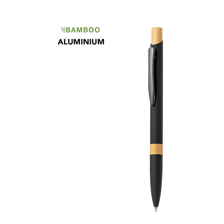 Der Kugelschreiber Lantasker kombiniert modernes Design mit umweltfreundlichen Materialien. Das Gehäuse aus hochwertigem Aluminium wird durch stilvolle Bambuselemente ergänzt, was ihm eine zeitlose Ästhetik verleiht. Mit einem Durchmesser von 1 cm und einer Länge von 14 cm liegt er angenehm in der Hand und sorgt für ein müheloses Schreibgefühl.