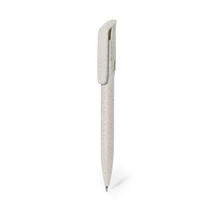 Praktischer Kugelschreiber aus Weizenstroh. Druckknopfmechanik, blaue Tinte und mit Weizenstroh-Logo auf der Oberseite des Kugelschreibers. Mit Clip in verschiedenen Farben und naturfarbenem Schaft.Weizenstroh fördert die Verwendung von natürlichen Rohstoffen und reduziert so den Schadstoffausstoß.