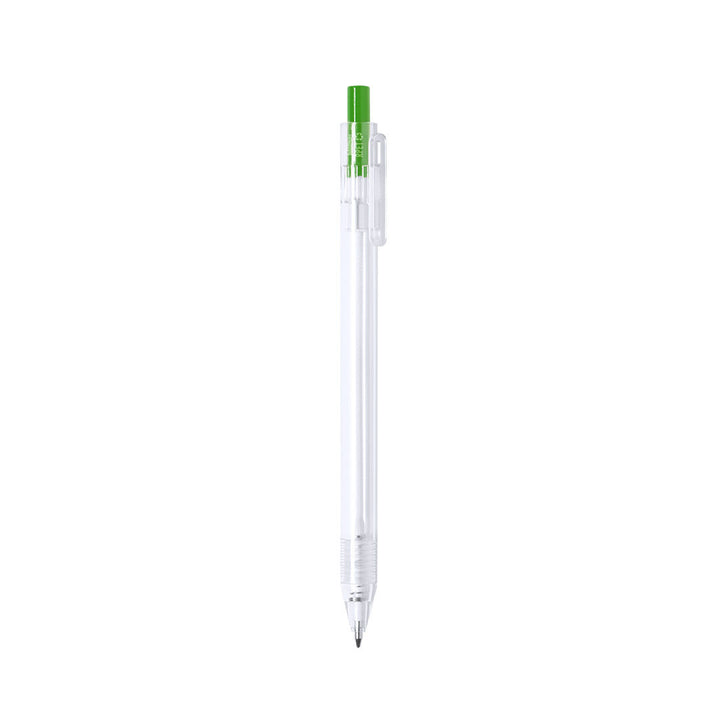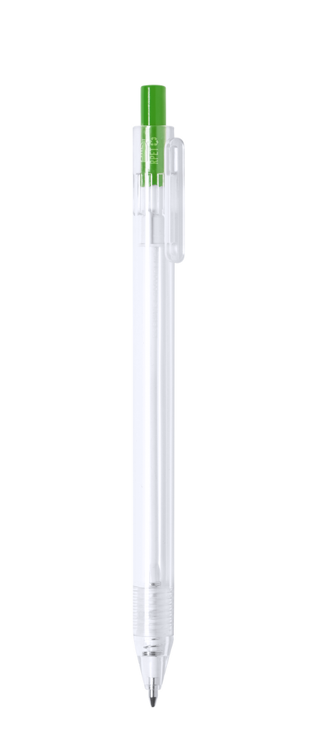 Linie "Natur" Kugelschreiber aus RPET-Material, hergestellt aus recyceltem Kunststoff, um die Wiederverwendung von Kunststoffabfällen zu fördern und die Nachhaltigkeit unseres Planeten zu unterstützen. Transparentes Gehäuse und Druckknopf in vielen Farben erhältlich, mit RPET-Logo auf dem Stiftkörper. Speziell für Tampondruck. Druckknopfmechanik und blauschreibend.