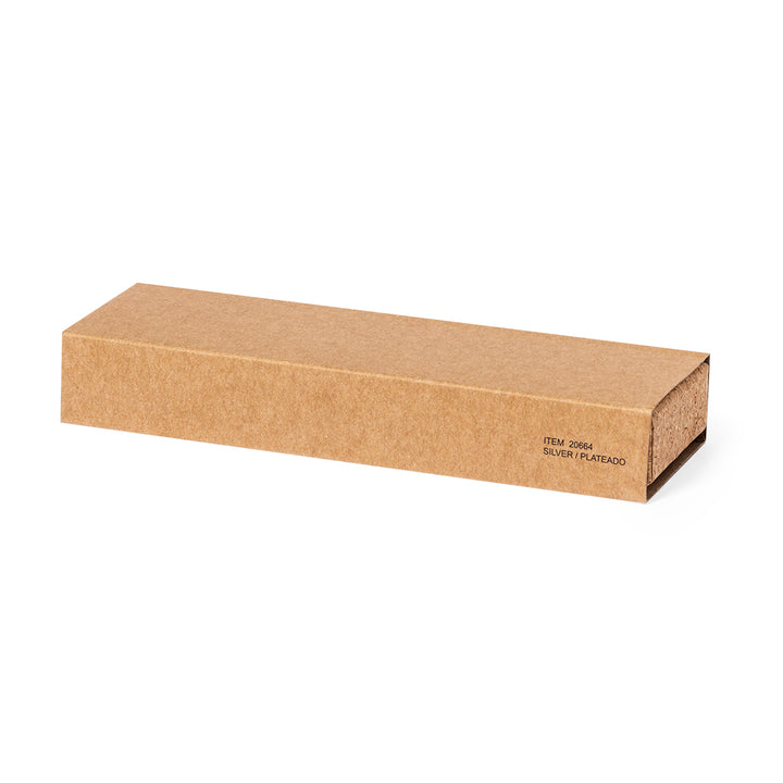 Edler Kugelschreiber aus recyceltem Edelstahl mit Druckknopfmechanismus. Robuster Schaft aus recyceltem Edelstahl mit mattem Finish und Metallclip. Mit blauer Tinte und Jumbo-Patrone. Präsentiert in einer eleganten Korkbox. Stahl ist eines der gefragtesten Materialien und kommt fast überall vor, von Alltagsprodukten bis hin zu Großkonstruktionen. Mit unzähligen Eigenschaften, darunter Langlebigkeit und einer hohen Wiederverwendbarkeit, ist es eine vielgeschätzte Alternative für nachhaltige Lösungen. Bei richtiger Behandlung können neue Ressourcen von unbegrenztem Nutzen gewonnen werden.