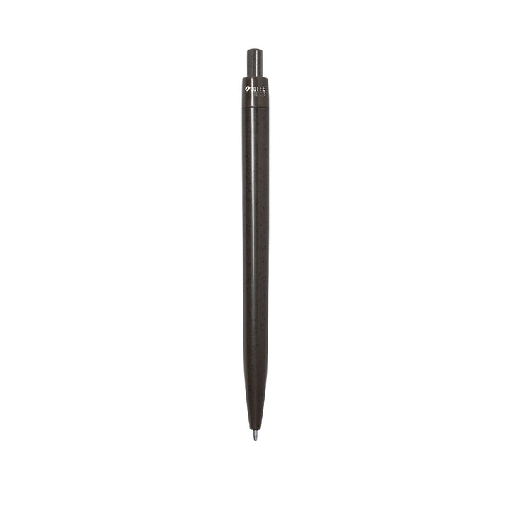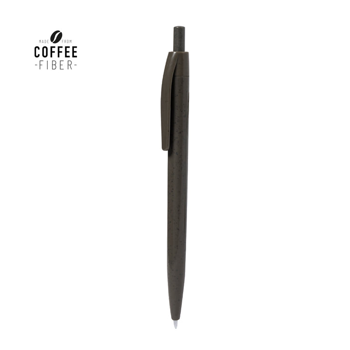 Kugelschreiber aus Kaffefaser. Mit Druckmechanismus und blauer Tinte. Beinhaltet ein Logo für Kaffefaser.Kaffefaser ist eine zirkuläre Lösung, die aus den Abfällen in der Kaffeeproduktion gewonnen wird. Eine nachhaltige Alternative, die den Einsatz von Kunststoffen reduziert, Energie in der Herstellungsweise spart und zum Umweltschutz beiträgt.