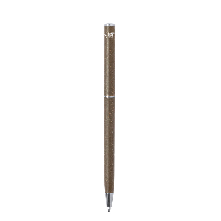 Kugelschreiber mit Zuckerrohrschaft. Metallclip und verchromte Beschläge, mit Drehmechanik und blauer Tinte. Mit Zuckerrohr-Logo und in einer natürlichen Farbe erhältlich.Zuckerrohrfaser ist ein natürliches Material, das aus biologisch abbaubaren Materialien hergestellt wird, die aus den faserigen Pflanzenresten nach der Extraktion von Zuckerrohrsaft gewonnen werden. Es handelt sich um ein widerstandsfähiges, nachhaltiges und umweltfreundliches Material.