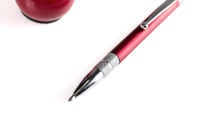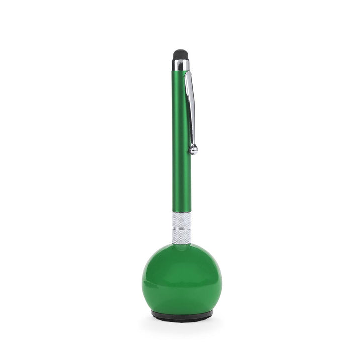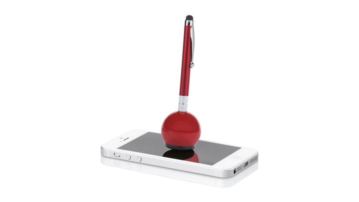 Origineller Dreh-Kugelschreiber mit integriertem Stylus und Bildschirmreiniger sowie geschmeidigem Schaft in kräftigen Farben.