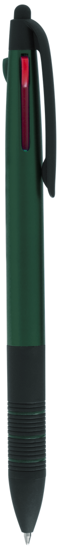 3-in-1 Druck-Kugelschreiber mit Stylus und modernem Design. Geschmeidiger Schaft mit Metallic-Finish in kräftigen Farben und Kontrastdetails sowie ergonomischem Griff in Schwarz. Mit farblich passenden Ringen und 3 Patronen in Blau, Rot und Schwarz.