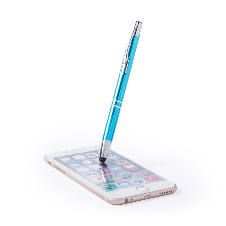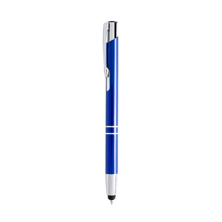 Druck-Kugelschreiber mit Stylus aus glänzendem Aluminium in lebhaften Farben. Jumbo-Patrone mit blauer Tinte.