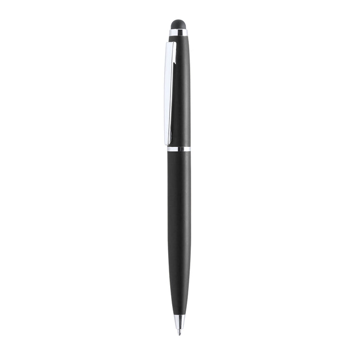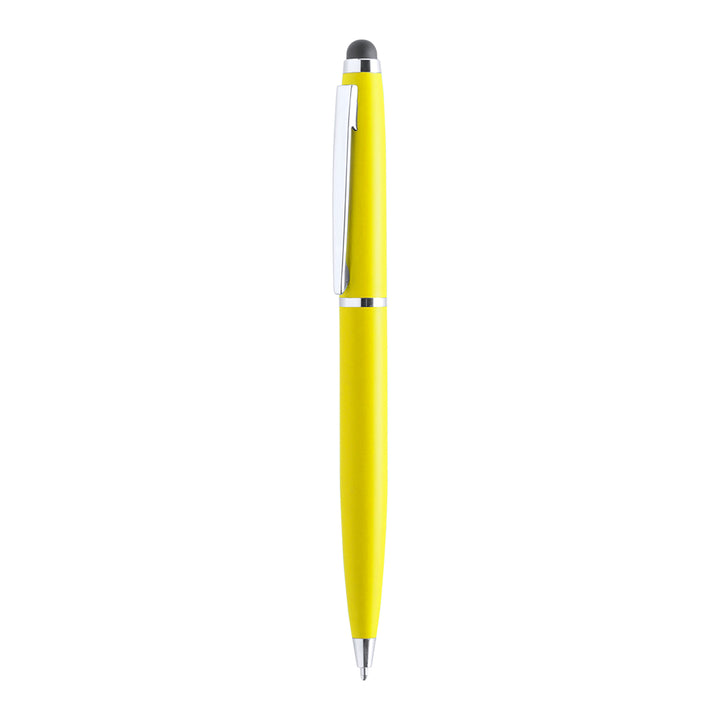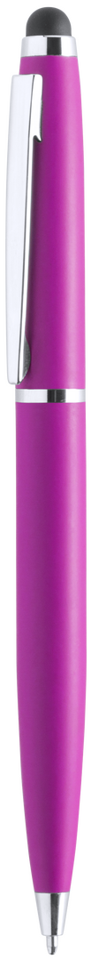 Dreh-Kugelschreiber mit Stylus und Metallgehäuse in kräftigen Farben. Kontrastdetails und Ringe in Silber. Blaue Tinte.