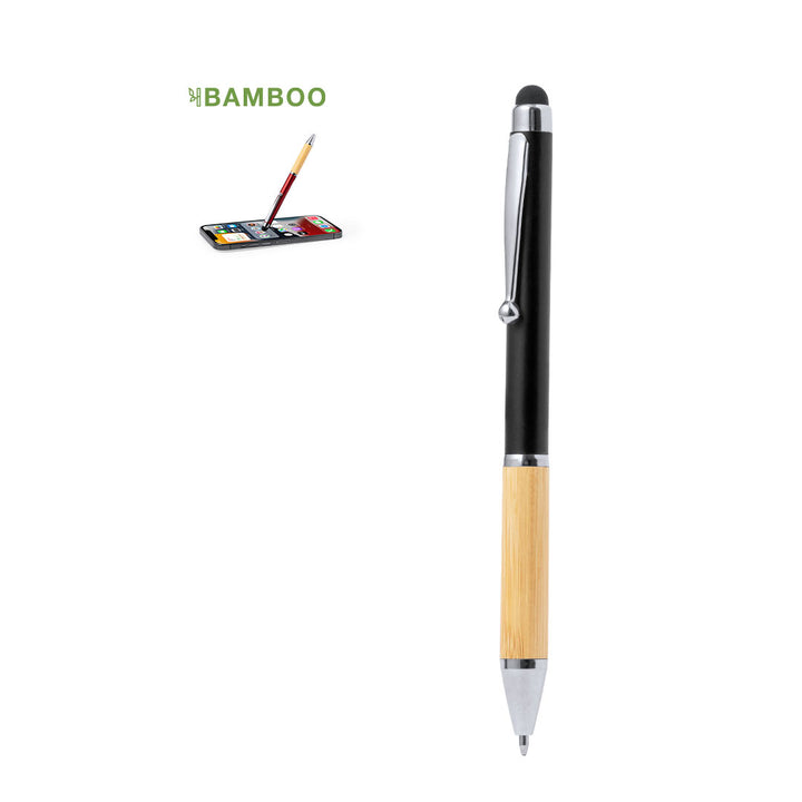 Der hochglanzlackierte Schaft sorgt für eine edle Optik, während der Bambusgriff angenehm in der Hand liegt und für Komfort beim Schreiben sorgt. Die Kombination aus schwarzem Spitzenzeiger und metallicfarbenen Akzenten verleiht dem Kugelschreiber einen professionellen und eleganten Look. Der Metallclip mit Drehmechanismus ermöglicht eine bequeme Handhabung und sicheren Halt an verschiedenen Oberflächen.