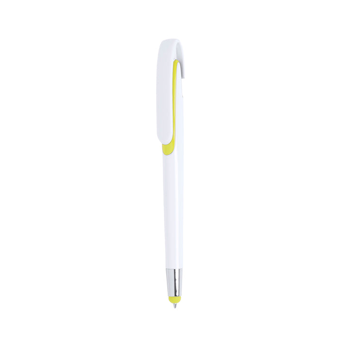 Druck-Kugelschreiber in glänzender Ausführung in Weiß, mit Kontrastdetails in verschiedenen lebendigen Farben. Mit Maxi-Clip und blauer Tinte.