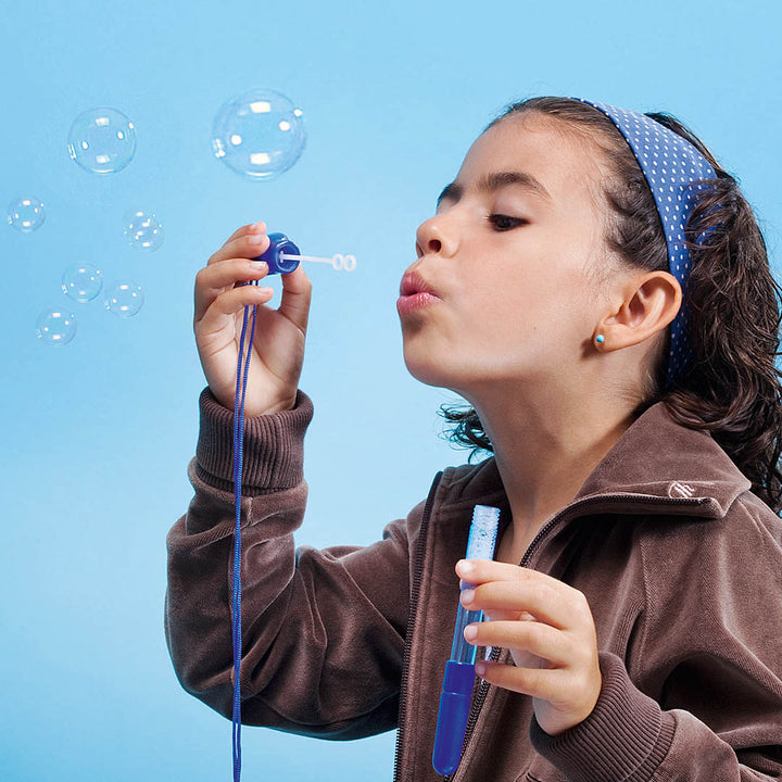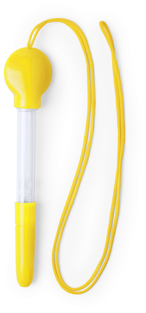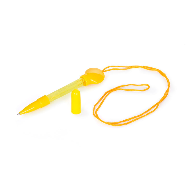 Lustiger Kugelschreiber mit Seifenblasen-Funktion in verschiedenen Farben. Mit farblich passendem Lanyard und Kappe. Blaue Tinte. Seifenblasenflüssigkeit ist nicht inklusive.