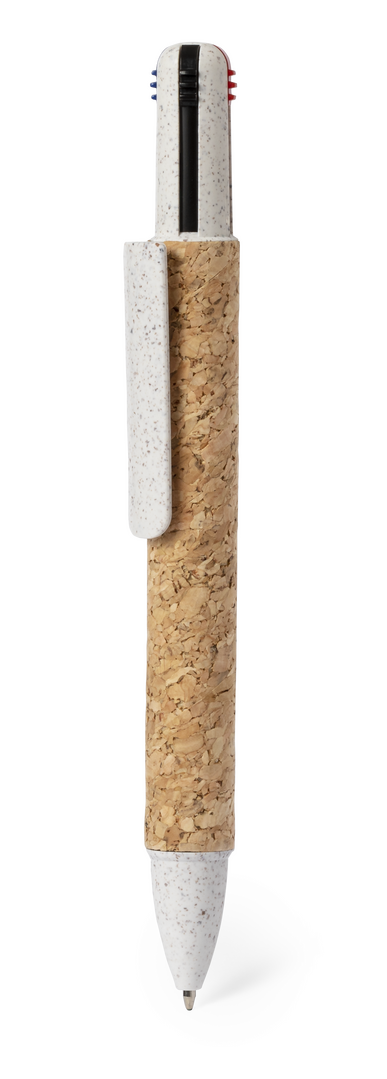 4-in-1 Kugelschreiber mit einziehbarem Druckknopfmechanismus. Kombination aus Naturkorkzylinder und Zubehör aus Weizenrohr und ABS, um die Verwendung und das Recycling von Rohstoffen zu fördern und so die Schadstoffemissionen zu reduzieren. Mit 4 Patronen in blauer, roter, schwarzer und grüner Tinte.Hergestellt aus pflanzlichen Bestandteilen, um die Verwendung natürlicher Rohstoffe zu fördern und die Schadstoffemissionen zu reduzieren.