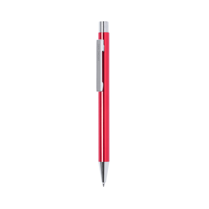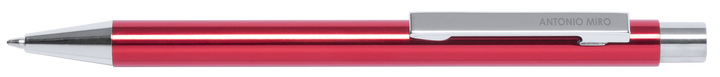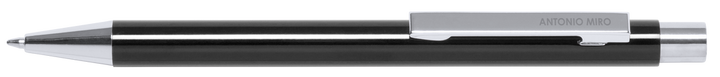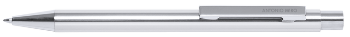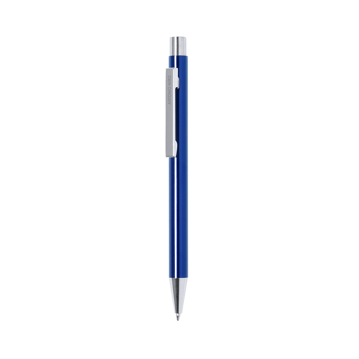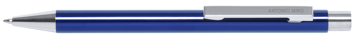 Druck-Kugelschreiber von Antonio Miró mit Aluminiumschaft in verschiedenen Farben und Silber. Präsentiert in einem Beutel mit dem Markenlogo. Blaue Tinte.