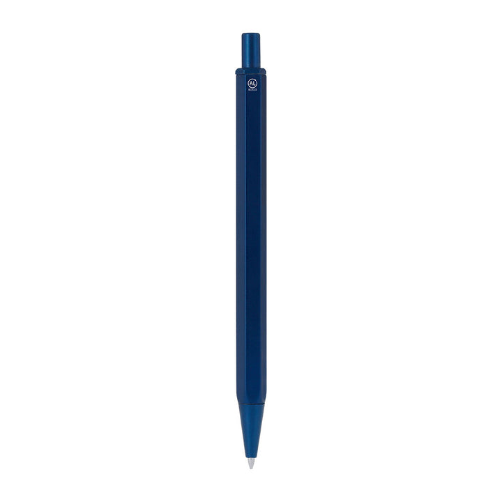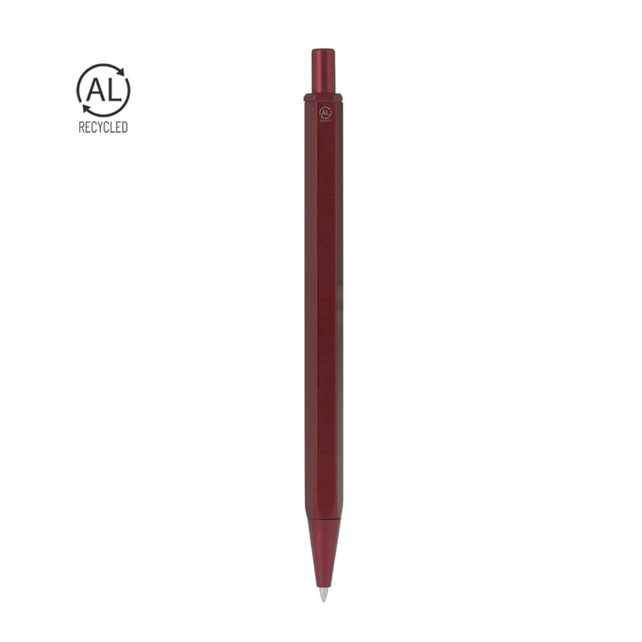 Eleganter Kugelschreiber aus recyceltem Aluminium. Mit markantem sechsseitigen Körper. Druckmechanismus aus recyceltem ABS und blauer Tinte. Mit markantem Logo für recyceltes Aluminium auf dem Stift.Recyceltes Aluminium ist ein Material mit nahezu unbegrenzten Recyclingmöglichkeiten, ohne seine ursprünglichen Eigenschaften zu verlieren und bei geringerem Energieverbrauch in diesem Prozess.GRS-Zertifizierung (Global Recycled Standard), die den Recyclingursprung des verwendeten Materials zur Herstellung des Produkts bestätigt.RABS ist ein hochgradig recycelbarer Kunststoff mit hoher Widerstandsfähigkeit und vielseitigen Anwendungen, der ihn zu einer umweltfreundlichen Lösung macht. Mit RCS-Zertifizierung, die den Recyclingursprung und mit RABS-Logo auf dem Stift bestätigt.