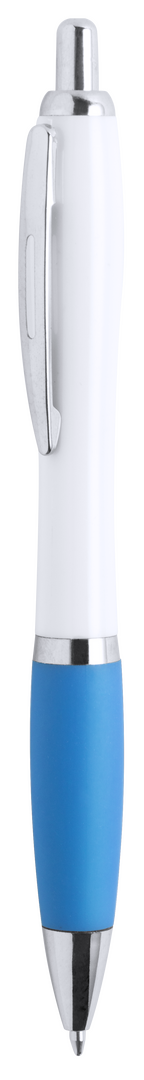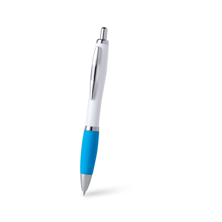 Druck-Kugelschreiber mit zweifarbigem Design und Schaft in Weiß. Mit verchromten Kontrastdetails, Metallclip und Griff in einer Vielzahl von auffälligen Farben. Blaue Tinte.