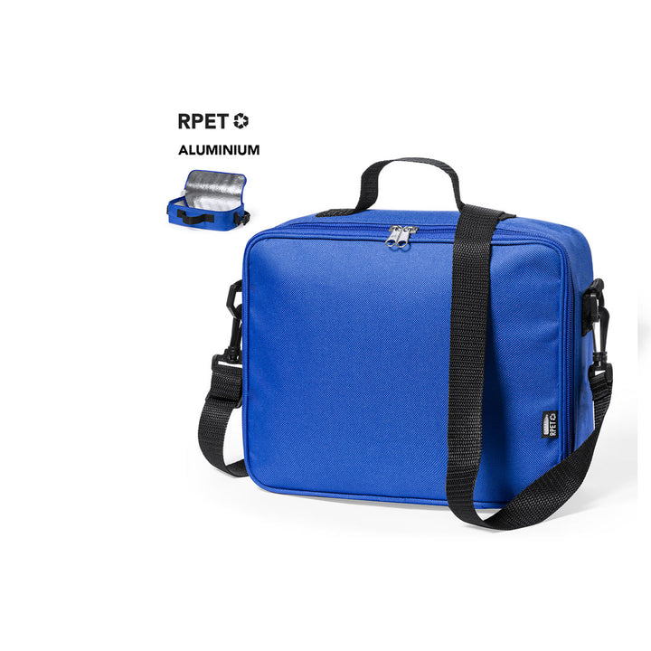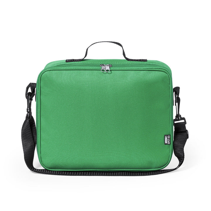 Linie "Natur" Kühltasche für Kinder. Aus strapazierfähigem 600D RPET, hergestellt aus recyceltem Kunststoff, um die Wiederverwendung von Kunststoffabfällen zu fördern und einen Beitrag zur Nachhaltigkeit des Planeten zu leisten. Schwarze Verzierungen und verstärkter Boden. Hauptfach mit Reißverschluss und isothermischem Aluminium im Inneren. Mit verstellbarem Schultergurt und verstärktem Tragegriff. Mit RPET-Emblem auf dem Außenetikett und in einer Vielzahl von Farben erhältlich.
