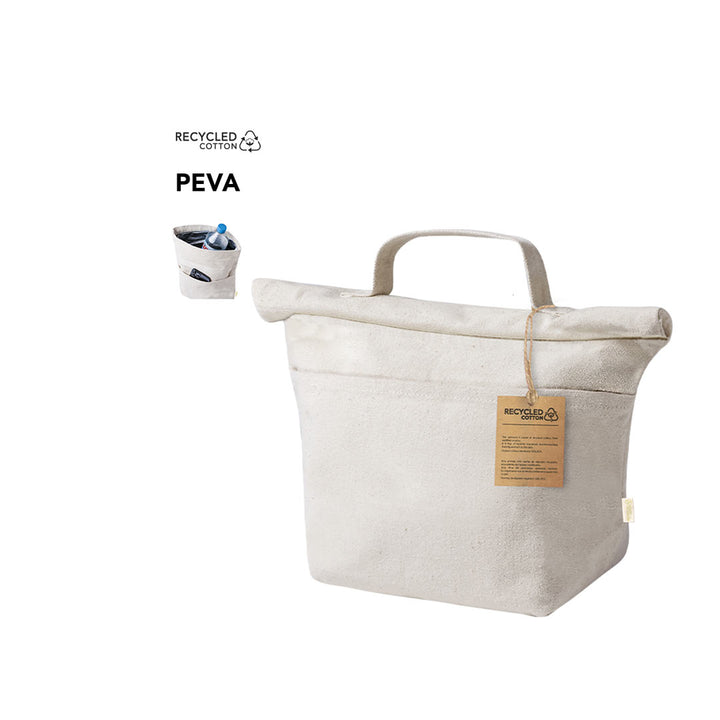Die Kühltasche Trixen besticht durch ihre nachhaltige Materialwahl und ihr praktisches Design. Sie besteht zu 100 % aus recycelter Baumwolle und verfügt über eine isothermische PEVA-Beschichtung im Inneren, die eine effektive Temperaturregulation für Ihre Lebensmittel und Getränke gewährleistet. Der Klettverschluss ermöglicht ein einfaches Öffnen und Schließen, während die zusätzliche Außentasche weiteren Stauraum für kleinere Utensilien bietet. Der stabile Griff sorgt für komfortables Tragen und macht die Tasche zu einem idealen Begleiter für den Alltag, Ausflüge oder ins Büro.
