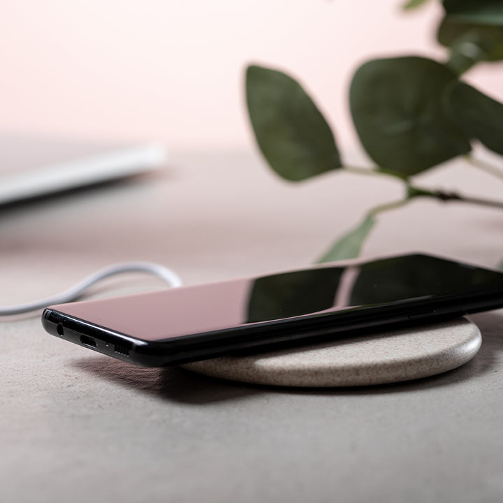 Drahtloses Ladegerät mit einem runden Design aus Weizenstroh, um die Verwendung natürlicher Rohstoffe zu fördern und Schadstoffemissionen zu reduzieren.Mit 10W-Schnellladefunktion und LED-Anzeige. Micro-USB-Ladekabel im Lieferumfang enthalten und kompatibel mit Geräten, die mit drahtloser Ladetechnologie ausgestattet sind. Sicherheitsschutz zur Vermeidung von Überhitzung, Überladung und Kurzschluss. Präsentiert in einer attraktiven Box im Naturdesign.