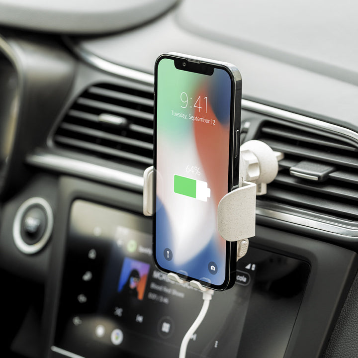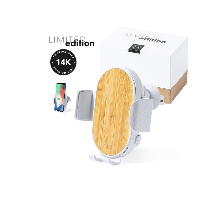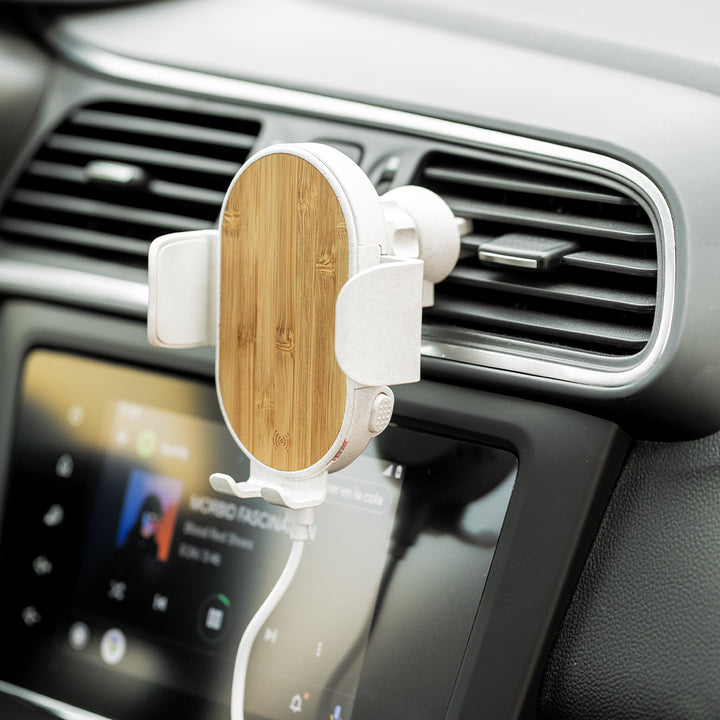 Das Gehäuse des Halters besteht aus strapazierfähigem ABS und Weizenstroh, wodurch natürliche Rohstoffe genutzt und die Umwelt geschont werden. Die Ladefläche aus Bambus ergänzt das moderne Design und unterstreicht das ökologische Konzept.