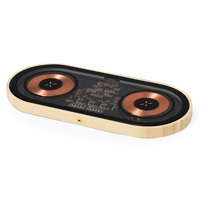 Das Ladegerät ermöglicht das kabellose Aufladen von zwei Geräten gleichzeitig mit einer Leistung von 15W, sofern diese mit der Qi-Technologie kompatibel sind. Die transparente Oberfläche gewährt einen Einblick in die internen Komponenten und verleiht dem Ladegerät ein modernes, einzigartiges Aussehen. Die Verbindung erfolgt über einen Typ-C-Anschluss, und das Gerät wird mit einer Bedienungsanleitung in Englisch und Spanisch geliefert.