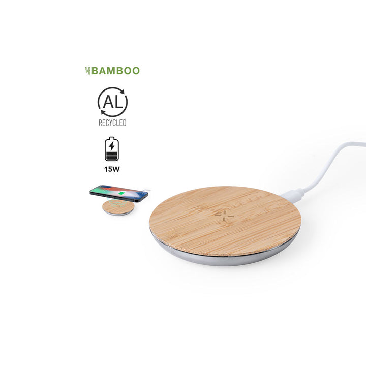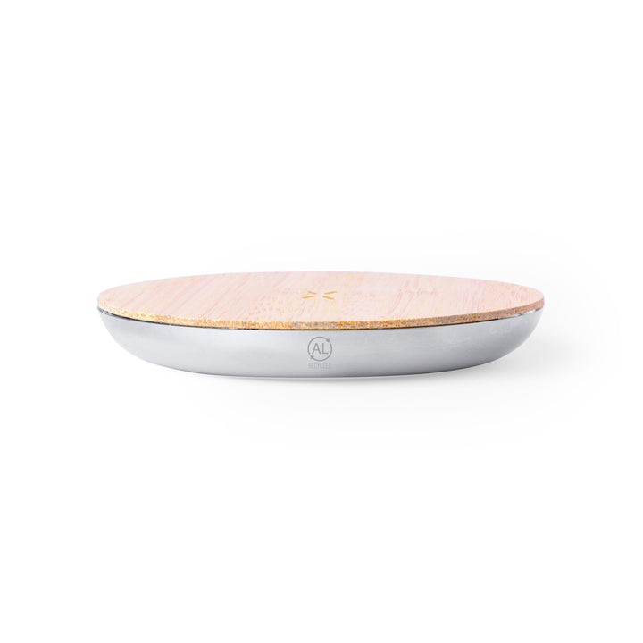 Das Ladegerät Sutmy kombiniert fortschrittliche Technik mit nachhaltigen Materialien und bietet eine elegante Lösung für das kabellose Laden. Hergestellt aus recyceltem Aluminium und Bambus, vereint es umweltfreundliches Design mit hoher Funktionalität. Mit einem Durchmesser von 9,1 cm und einer Höhe von 1,4 cm ist es kompakt, leicht und lässt sich problemlos in den Alltag integrieren.