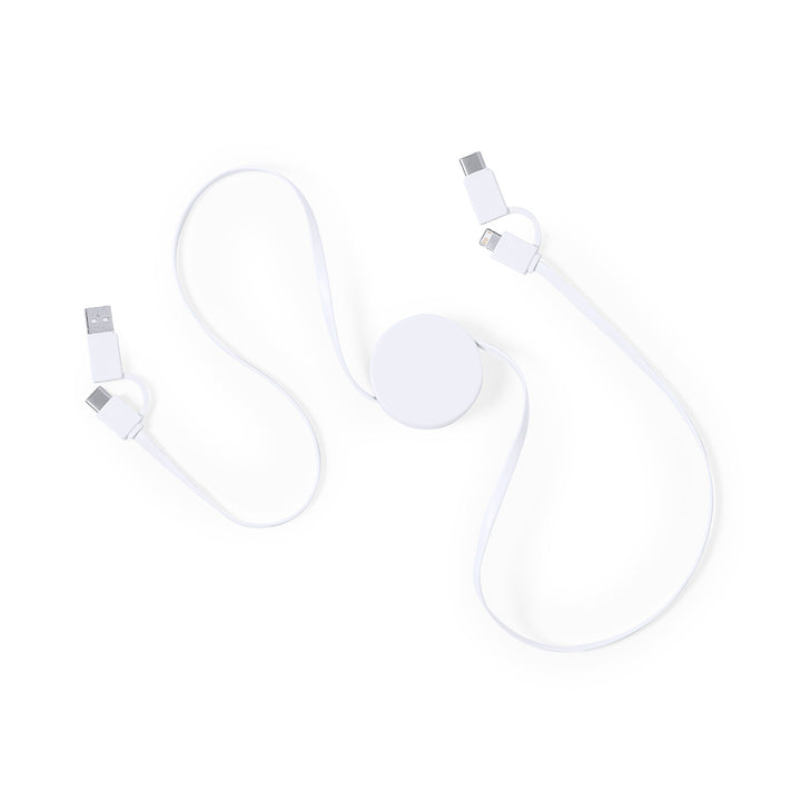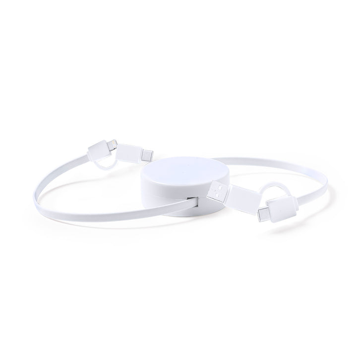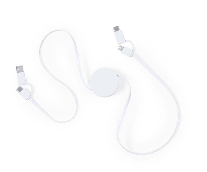 Ultrakompaktes Design, ausziehbares Ladegerät. Anschlüsse Typ C (Eingang und Ausgang) und Dual Micro USB/Lightning. Auflade- und Datenübertragungsfunktion. Breite Brandingfläche und präsentiert in einer individuellen Tasche.
