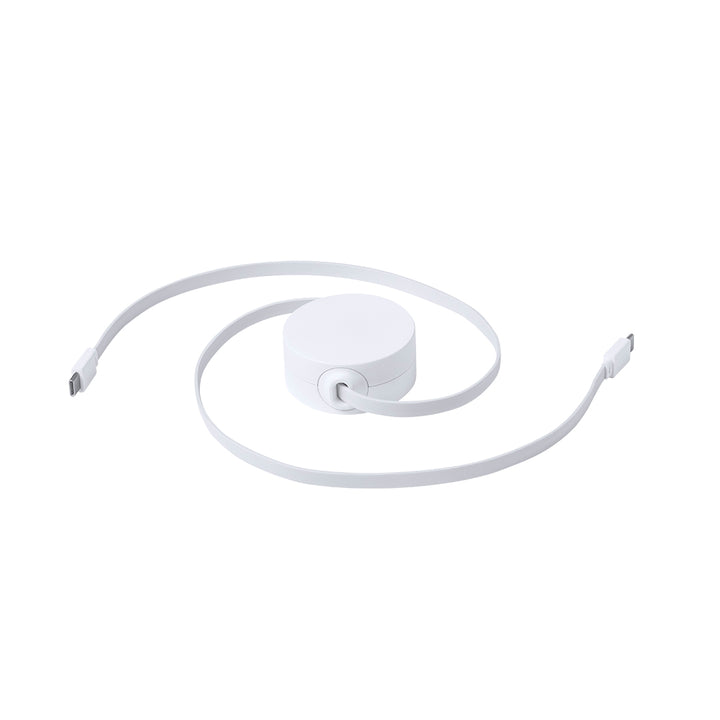 Verlängerbares Lade- und Synchronisationskabel, geeignet zum Aufladen von Geräten und zur Datenübermittlung. Hergestellt aus widerstandsfähigem weißem RABS. Zentraler Teil mit großer Brandingfläche und ausziehbarem Innenmechanismus. Mit Eingangs- und Ausgangsanschlüssen vom Typ C. Präsentiert in einer individuellen Tasche im Kraftdesign.RABS ist ein hochgradig recycelbarer und sehr widerstandsfähiger Kunststoff mit einer Vielzahl von Anwendungen, die ihn zu einer umweltfreundlichen Lösung machen. Mit RCS-Zertifizierung, die seine recycelte Herkunft garantiert.
