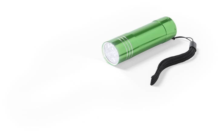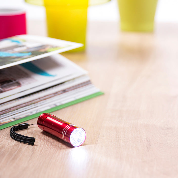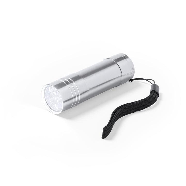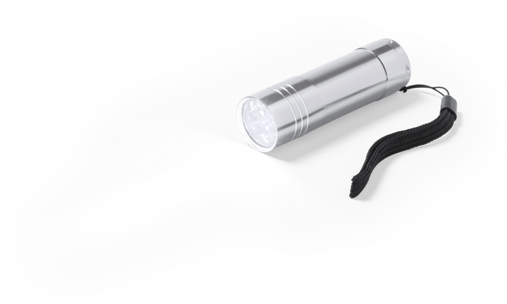 9-LED-Taschenlampe mit hoher Leuchtkraft aus resistentem Aluminium. Mit Trageschlaufe und Druckknopf mit robuster Gummibeschichtung. Batteriebetrieben - 3 x AAA nicht inklusive. Präsentiert in einer individuellen Box.