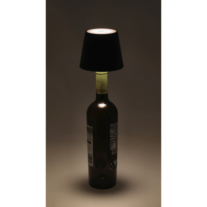 LED-Lampe mit Adapter zum Einsetzen in den Flaschenhals, um eine originelle Lampe zu schaffen. Mit 31 LEDs (27 weiße und 4 gelbe), dimmbar mit einem Touch-Button. Mit 800mAh Akku, wiederaufladbar über USB, Typ-C-Kabel inklusive.
