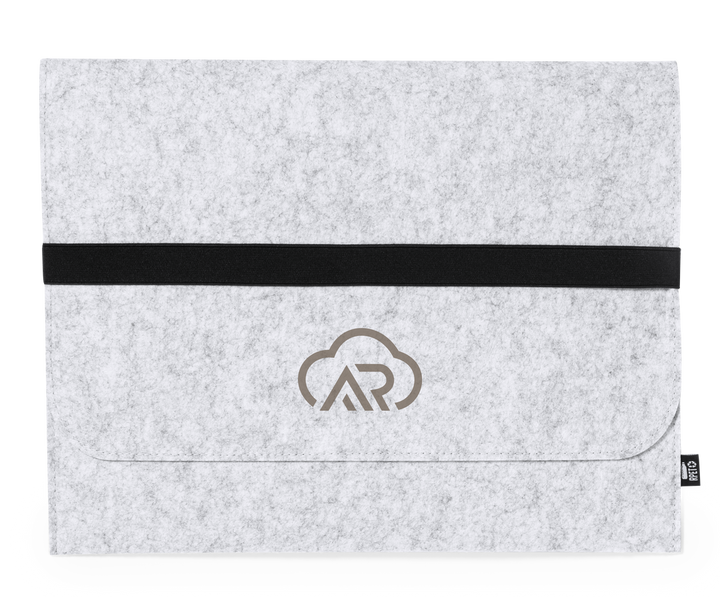 Laptop-Hülle aus haltbarem, recyceltem RPET-Filz. Klappe mit elastischem Verschluss und Vordertasche, mit RPET-Emblem auf dem Außenetikett. Für Laptops bis zu 15 Zoll.Recycelter RPET-Filz ist das Ergebnis der Kombination des Recyclingprozesses von Kunststoffen mit der tausendjährigen Technik der Filzherstellung, was zu einem Öko-Trend-Material führt, das nicht nur recycelt, sondern auch wiederverwertet werden kann.