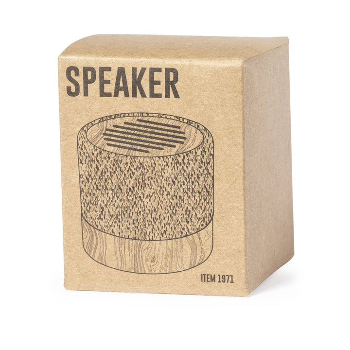 Compacto altavoz de línea nature y conexión Bluetooth®. Carcasa fabricada en bambú y poliéster RPET, elaborado a partir de plástico reciclado, para así fomentar la reutilización de residuos plásticos y ayudar a la sostenibilidad del planeta. 3W de potencia, batería de 300 mAh y conexión Bluetooth® 5.0. Incluye cable cargador Tipo C y manual de instrucciones en español e inglés. Con distintivo RPET y presentado en caja individual de diseño kraft.