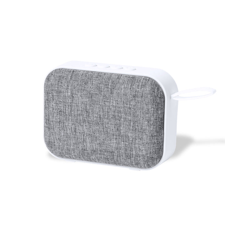 Lautsprecher mit Bluetooth 5.0-Verbindung im Zweifarbigem-Design, mit Polyester-Gitter und farblich passendem Silikon-Tragegriff. Liefert 3 W Leistung, mit Freisprechfunktion und FM-Radio-Funktion. USB-Player und Steckplatz für Micro-SD-Karte mit bis zu 32 GB Kapazität. Hilfsleitungseingang über 3,5-mm-Klinkenanschluss und rutschfesten Sockel. Kompatibel mit iOS und Android, einschließlich Mikro-USB-Ladekabel, und in einer breiten Palette von Farben erhältlich. Präsentiert in einer attraktiven Design-Box.