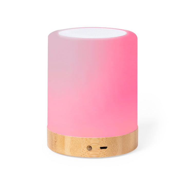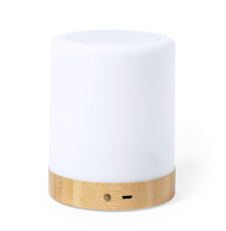 Nature Line Lautsprecher, hergestellt aus einer Kombination aus Bambus und widerstandsfähigem ABS. Mit Smart-LED-Technologie und Bluetooth 5.0-Verbindung. Dank der ILT Intelligent Led Technology müssen Sie nur mit den Fingern auf den oberen Teil des Lautsprechers drücken, um die Farbe und Intensität des LED-Lichts nach Wunsch zu ändern und die 4 verfügbaren Lichtpositionen zu kombinieren. 3W Leistung und rutschfeste Gummihalterungen an der Basis. Präsentiert in einer attraktiven Öko-Designbox.