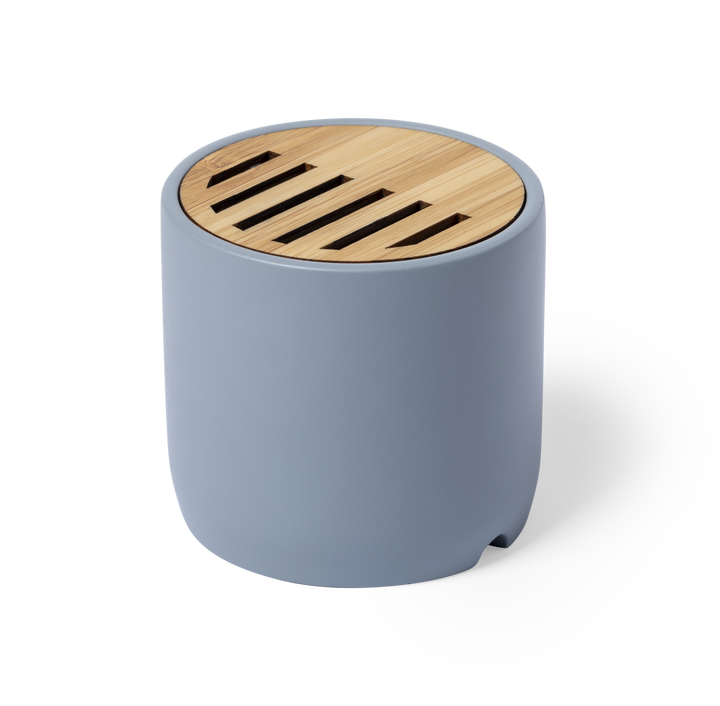 Bluetooth-Lautsprecher in Kombination aus natürlich geschnittenen Bambusstücken und Kalksteinzement, ein Konglomerat, das durch die Kombination natürlicher Materialien, hauptsächlich gemahlener Kalkstein und Wasser, gebildet wird, wodurch ein Material von großer Konsistenz und Haltbarkeit entsteht.Kompakte Größe, mit Bluetooth 5.0-Verbindung und 3W Leistung. Kompatibel mit iOS und Android, einschließlich Mikro-USB-Ladekabel und wird in einer attraktiven Design-Box geliefert. Bedienungsanleitung in Spanisch und Englisch erhältlich.