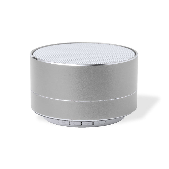 Compacto altavoz con conexión Bluetooth®. Fabricado en aluminio reciclado, con posibilidades de reciclaje casi infinitas, sin perder sus propiedades originales y consumiendo menos energía en este proceso. Con 3W de potencia y batería de 450 mAh. Conexión Bluetooth® 5.0, con función manos libres y radio FM. Ranura para tarjetas micro SD, con luz ambiente en la parte inferior. Disponible en variada gama de colores y presentado en caja individual de diseño kraft, con manual de instrucciones en español e inglés.