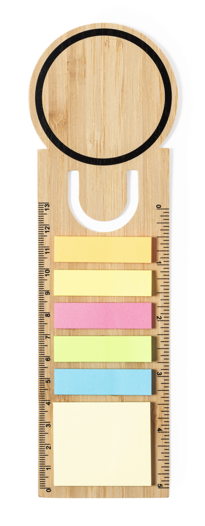 Linie "Natur" Lesezeichen Lineal. Hergestellt aus Bambus, mit einer breiten Branding-Oberfläche. Inklusive 25 mittelgroße Haftnotizen und 125 Mini-Haftnotizen. Messsystem in Zentimetern und Zoll.