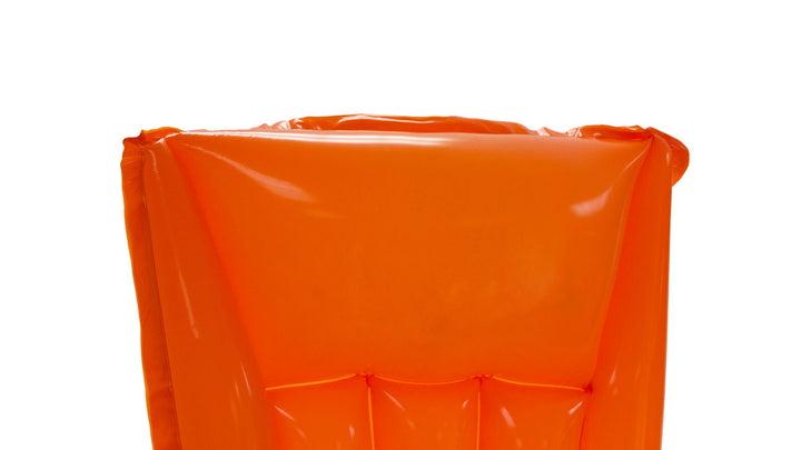 Aufblasbare Matratze von 180 cm Länge aus robustem PVC in lebendigen Farben. Präsentiert mit spezieller Faltung für einfaches Bedrucken.